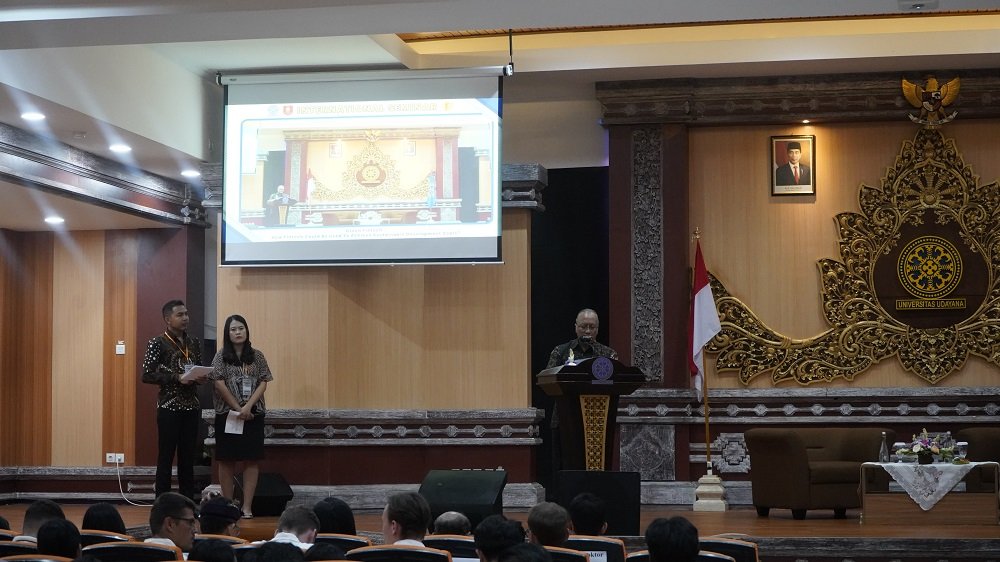 Kegiatan seminar internasional diawali dengan sambutan dari Ketua HIMA PSDIM, Abriansyah Harahap dilanjutkan dengan sambutan Koordinator Program Studi Ilmu Manajemen Prof. Dr. Ida Bagus Anom Purbawangsa, S.E., M.M. mewakili Dekan Fakultas Ekonomi dan Bisnis Universitas Udayana.