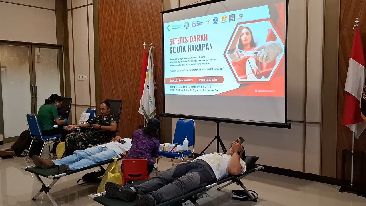Denpasar I barometerbali – Pengurus Wilayah Ikatan Wartawan Online (PW-IWO) Bali dan Komite Donor Darah Indonesia (KDDI) Provinsi Bali menggelar aksi donor darah di Aula prof. Ngoerah pada sabtu (22/2/2025). Acara tersebut dengan mengusung tema “Setetes Darah, Sejuta Harapan” kegiatan kali ini diikuti 48 peserta yang berhasil lolos pemeriksaan atau screening awal, dari total kurang lebih 61 peserta yang mendaftar.