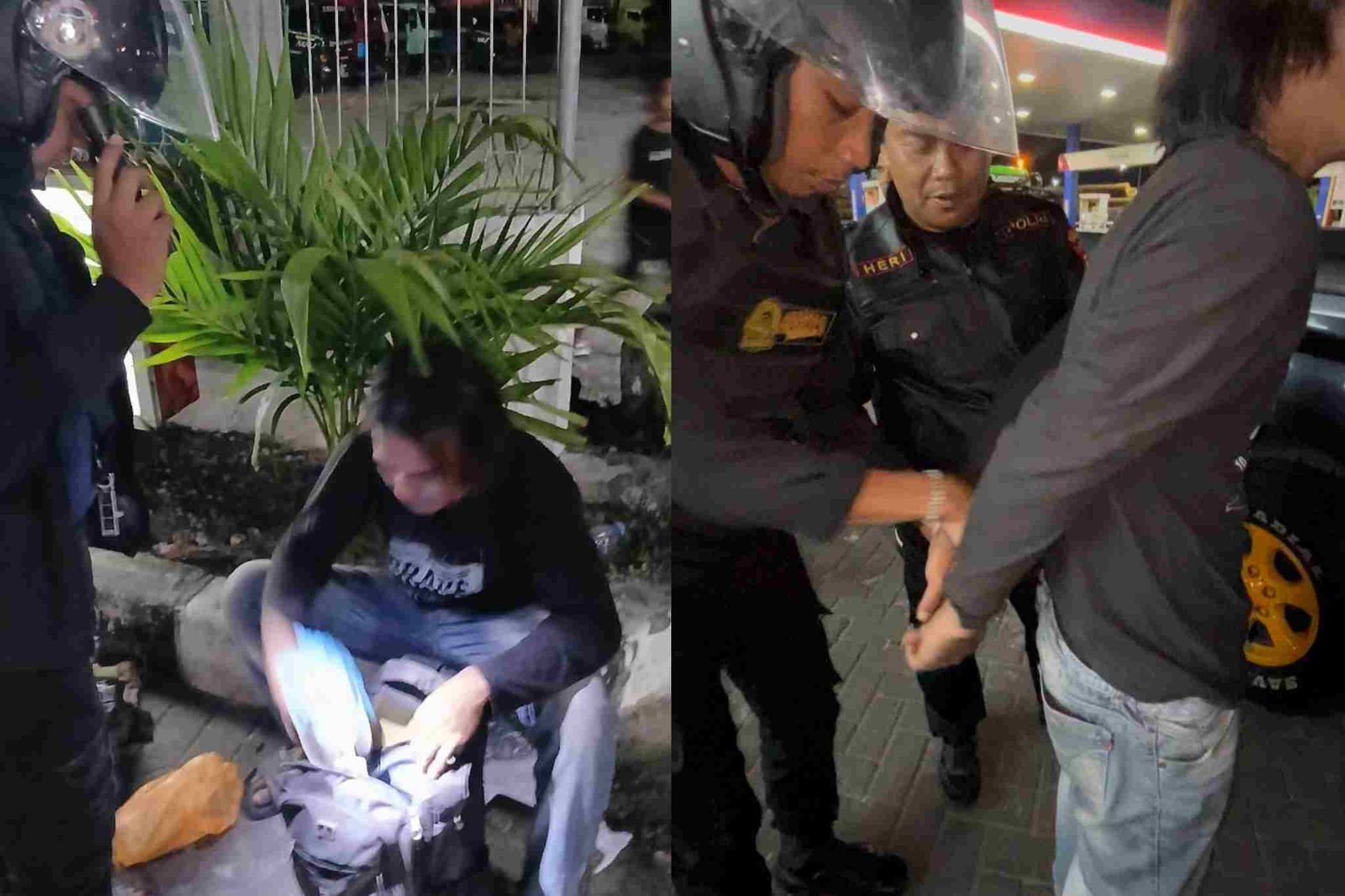 Foto: Satuan Raimas Kalamunyeng Polres Gresik bertindak cepat mengamankan pelaku penusukan di SPBU Bunder pada Sabtu (13/9/2025) malam. (barometerbali/redho)