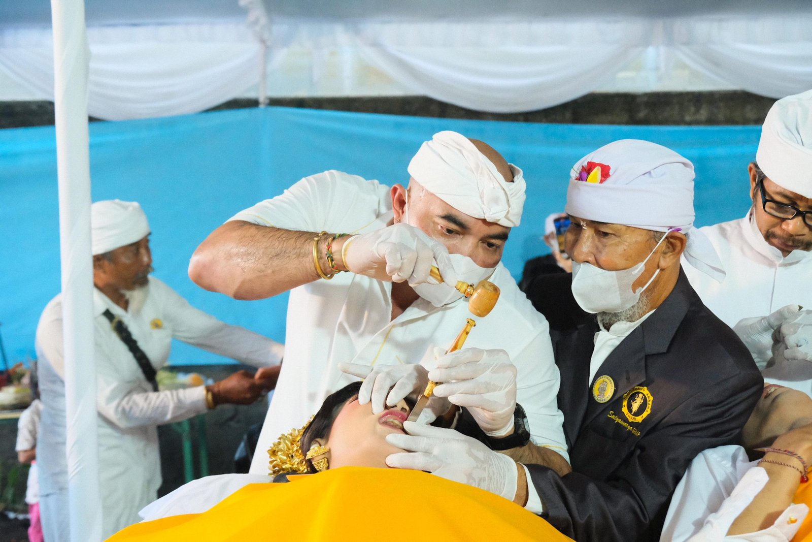 “Program ini sangat bagus, karena saya selama ini selalu terkendala biaya untuk bisa menggelar upacara metatah ini. Terima kasih Bapak Prabowo, apalagi acara metatah massal ini sangat bagus pelayanannya. Bantennya juga sudah lebih dari cukup,” imbuh Wayan Atmi warga Petang.