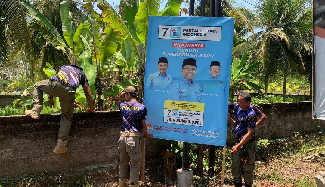 Jembrana – Tim gabungan yang terdiri dari Satuan Polisi Pamong Praja (Pol PP), Badan Pengawas Pemilu (Bawaslu), Komisi Pemilihan Umum Daerah (KPUD), Kepolisian dan Kesbangpol Kabupaten Jembrana melaksanakan operasi penyisiran dan penurunan paksa baliho, spanduk, pamflet, banner, dan bendera tanpa memiliki izin di seluruh wilayah Kabupaten Jembrana, Bali. Tindakan ini tidak hanya ditujukan kepada partai politik, tetapi mencakup semua pihak yang melanggar peraturan, Jumat (27/10/23).