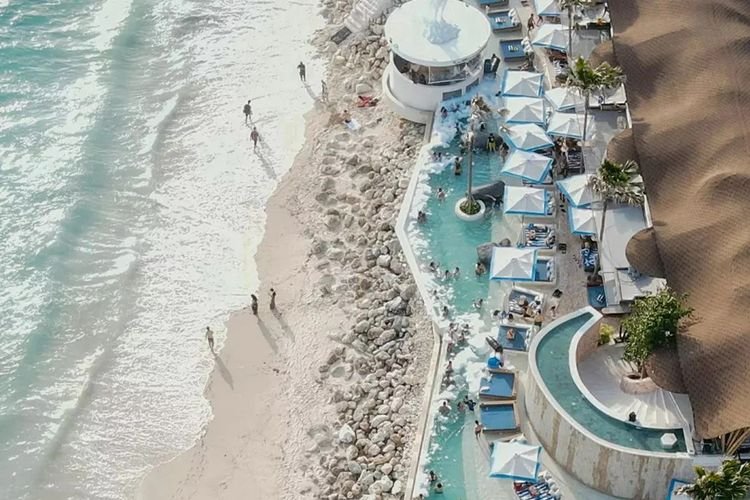 Saat bersantai di beach club ini, Anda akan dimanjakan dengan pemandangan ciamik dari Pantai Melasti Ungasan.