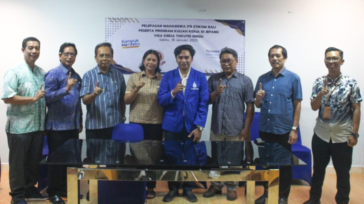 Denpasar | barometerbali – Rektor ITB STIKOM Bali Dr. Dadang Hermawan melepas salah seorang mahasiswanya, I Wayan Wisnu Wicaksana untuk mengikuti program kuliah sambil kerja di Jepang menggunakan visa kerja atau tokutei ginou.