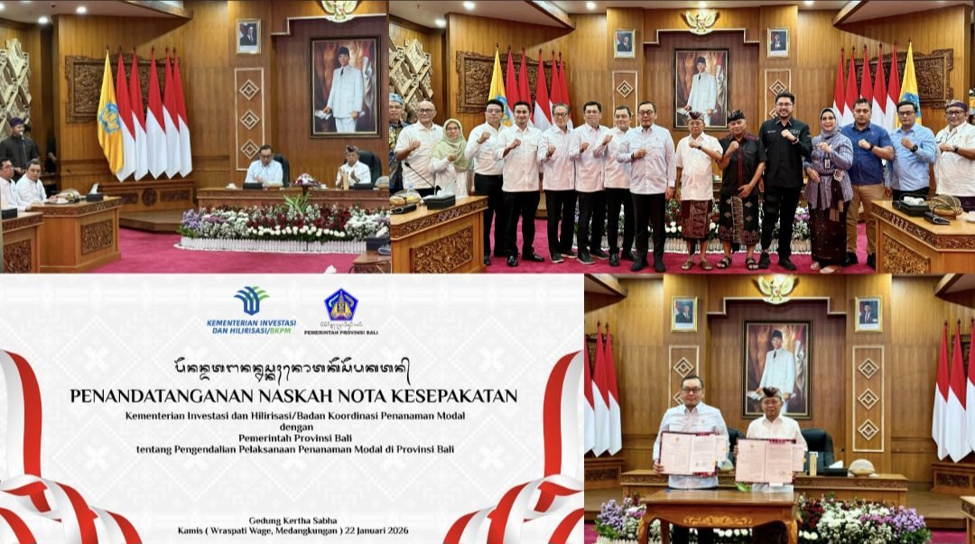 Melalui Nota Kesepakatan ini, Pemerintah Provinsi Bali bersama Kementerian Investasi dan Hilirisasi/BKPM RI berkomitmen untuk menciptakan iklim investasi yang kondusif, meningkatkan kepastian hukum, serta mempererat koordinasi dan pengawasan penanaman modal antara Pemerintah Pusat dan Pemerintah Daerah.