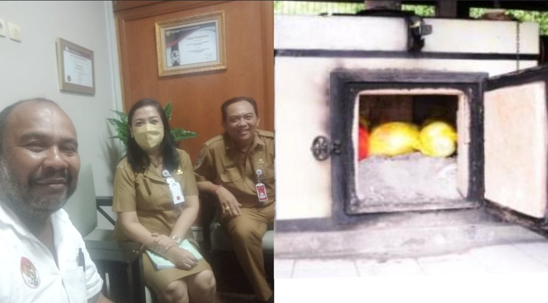 Bagian kiri foto: Direktur RSUD Wangaya dr Anak Agung Made Widiasa (kanan) mendampingi Wakil Direktur Penunjang dan Pengembangan SDM RSUD Wangaya, dr Ida Ayu Asweni Dewi (tengah) saat memberikan penjelasan kepada awak media Agustinus Apollonaris K. Daton (kiri) tentang pengelolaan limbah medis dengan insenerator (foto kanan) di RSUD Wangaya Denpasar, Rabu (18/01/2023). Kolase: poll/rsud wangaya