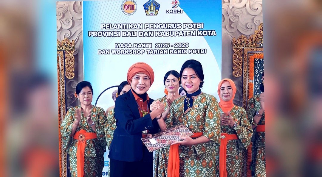 Barometer Bali | Gianyar – Ni Kadek Winie Kaori Intan Mahkota resmi menakhodai Perkumpulan Olahraga Tarian Baris Indonesia (POTBI) Provinsi Bali, setelah dilantik oleh Ketua Harian Perkumpulan Olahraga Tarian Baris Indonesia (POTBI), Sri Mei Lestari, S.E., sebagai Ketum POTBI Provinsi Bali Masa Bakti 2025-2029 di UC Sliver Batubulan, Kabupaten Gianyar, Minggu, (11/5/2025).