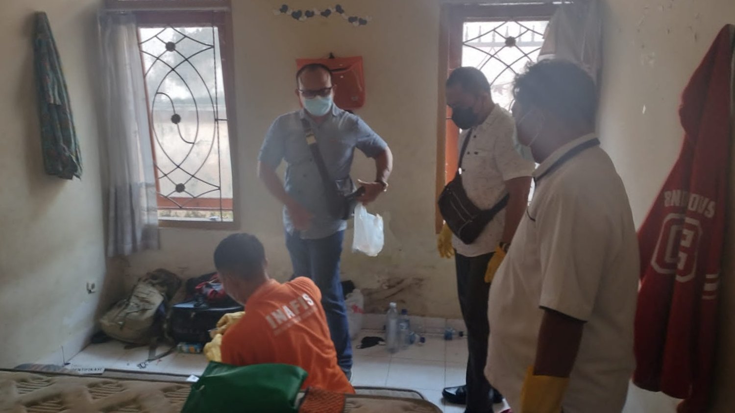 Foto: Kapolsek Singaraja AKP Nyoman Pawana Jaya Negara bersama Unit Reskrim dan tim medis dari Puskesmas Buleleng I dr. Debora Asetha, untuk melakukan pemeriksaan korban dan olah TKP meninggalnya mahasiswa di mess Undiksha, di Jalan Dewi Sartika Selatan Nomor 11 B, Kelurahan Kaliuntu, Buleleng, Rabu (28/12/2022). (res/bllg)
