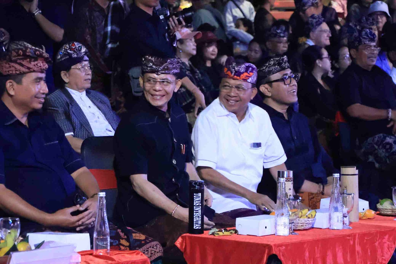 Selepas pertunjukan, Gubernur Koster dikerubungi oleh para penampil (pragina) dan anggota sekaa gong yang antusias ingin berfoto bersama. “Semuanya tampil bagus dan penuh semangat. Saya harap bisa diteruskan kecintaan pada seni budaya Bali,” ucap Gubernur Koster kepada para penampil, yang sebagian besar adalah remaja, bahkan masih duduk di bangku SMP.