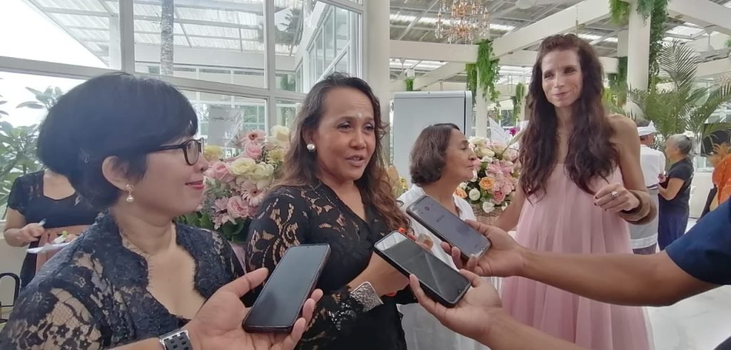 Owner Sanjiwani Healing Space, Mas Malaika (dua dari kiri) saat diwawancarai awak media ditemani Neeru Gurjit (dua dari kanan) Ellen Cnops (kanan) dan Azza Waslati (kiri). (barometerbali/rian)