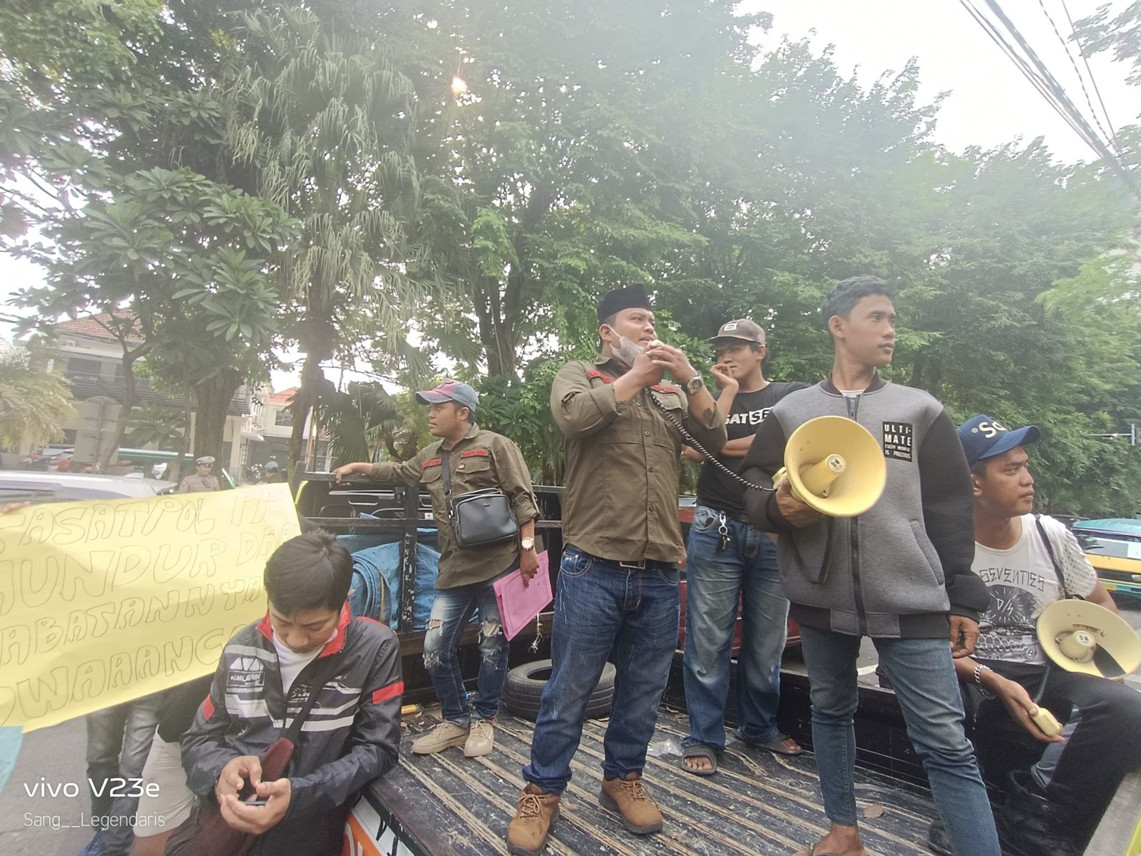Aksi Damai yang digelar oleh Sapura (Sahabat Pemuda Surabaya) di depan halaman Kantor Satpol PP Kota Surabaya. Jalan Jaksa Agung Suprapto No 04 Kelurahan Ketabang, Kecamatan Genteng, Surabaya. Senin 22/04/2024 sekira pukul 14:00.