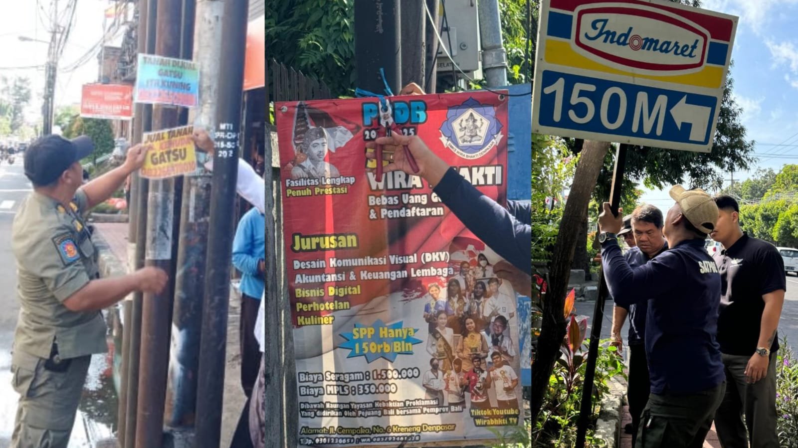 Ket foto: Satpol PP Denpasar kembali menertibkan puluhan media iklan yang terpasang tanpa izin di fasilitas umum wilayah Kota Denpasar pada Kamis (11/7). (Sumber: barometerbali/Ayu)