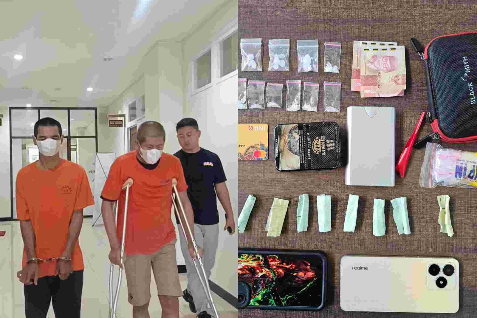 Penangkapan keduanya dilakukan sekitar pukul 19.30 WIB di Jalan Nyai Ageng Arem-arem No. 35C, Desa Pekelingan. Dari hasil penggerebekan, petugas menemukan 12 plastik klip berisi kristal putih diduga sabu.