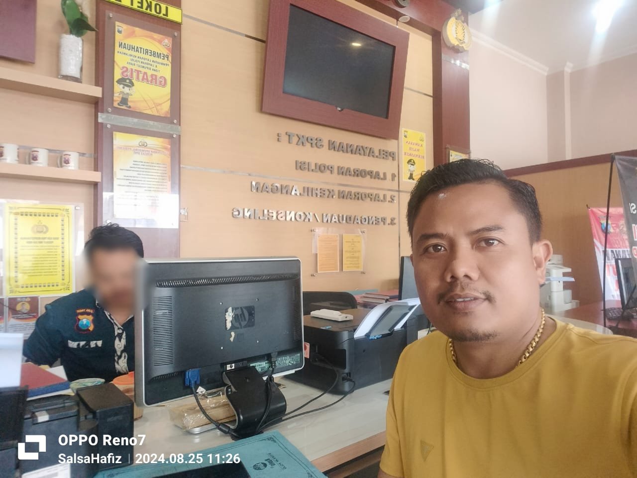Ket foto: Baihaki Akbar usai membuat laporan di Mapolres Lamongan, Minggu (25/8). (Sumber: barometerbali/Redho)