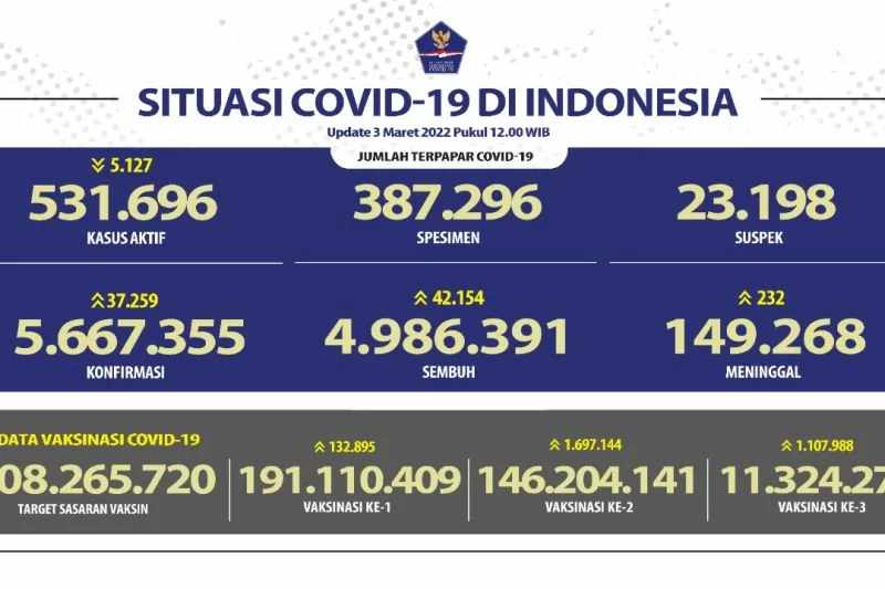 Penambahan penerima dosis ketiga ini setelah 146.204.141 jiwa mendapat vaksin dosis kedua. Terdapat penambahan 1.697.144 jiwa yang mendapat vaksin dosis kedua pada Kamis.