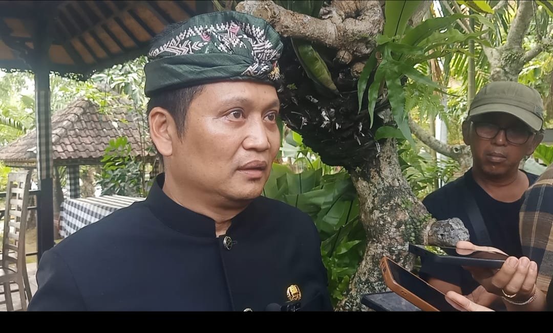 Foto: Bupati Jembrana Kembang Hartawan saat diwawancarai wartawan usai Sertijab. (barometerbali/dika)