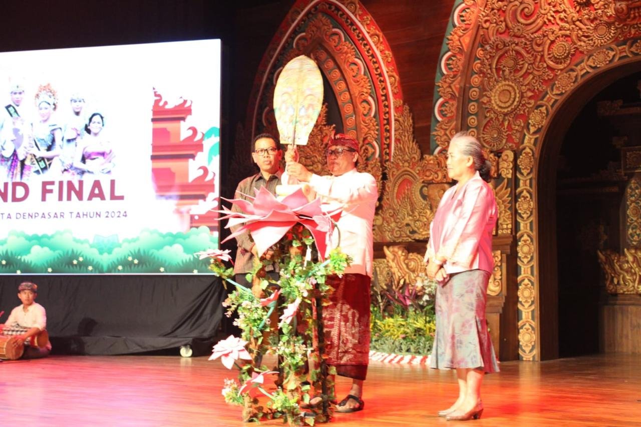 Foto: Sekda Alit Wiradana saat membuka Grand Final Pemilihan Duta GenRe Denpasar 2024 ditandai dengan penancapan kayonan di Dharma Negara Alaya Lumintang, Rabu (17/4/2024). (Sumber: Eka).
