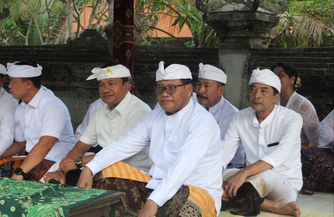 Ket foto: Sekretaris Daerah Kota Denpasar, Ida Bagus Alit Wiradana menghadiri Karya Ngeratep, Ngurip, Melaspas lan Pasupati Sesuhunan Ida Ratu Ayu Mas Rangda di Pura Kahyangan Desa Adat Sanur, bertepatan Rahina Kuningan, pada Sabtu (5/10). (barometerbali/arm)