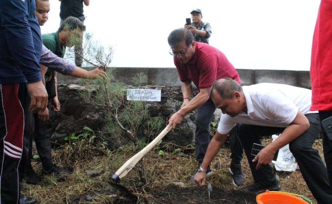 Ket foto: Sekretaris Daerah Kota Denpasar, Ida Bagus Alit Wiradana Ikuti Aksi Bersih Pantai dan Penanaman Pohon, Serangkaian Hari Lingkungan Hidup Sedunia yang dilaksanakan di Pantai Padang Galak, Desa Kesiman Petilan Denpasar, pada Jumat (7/6/2024). (Sumber: hmsdps/arm)
