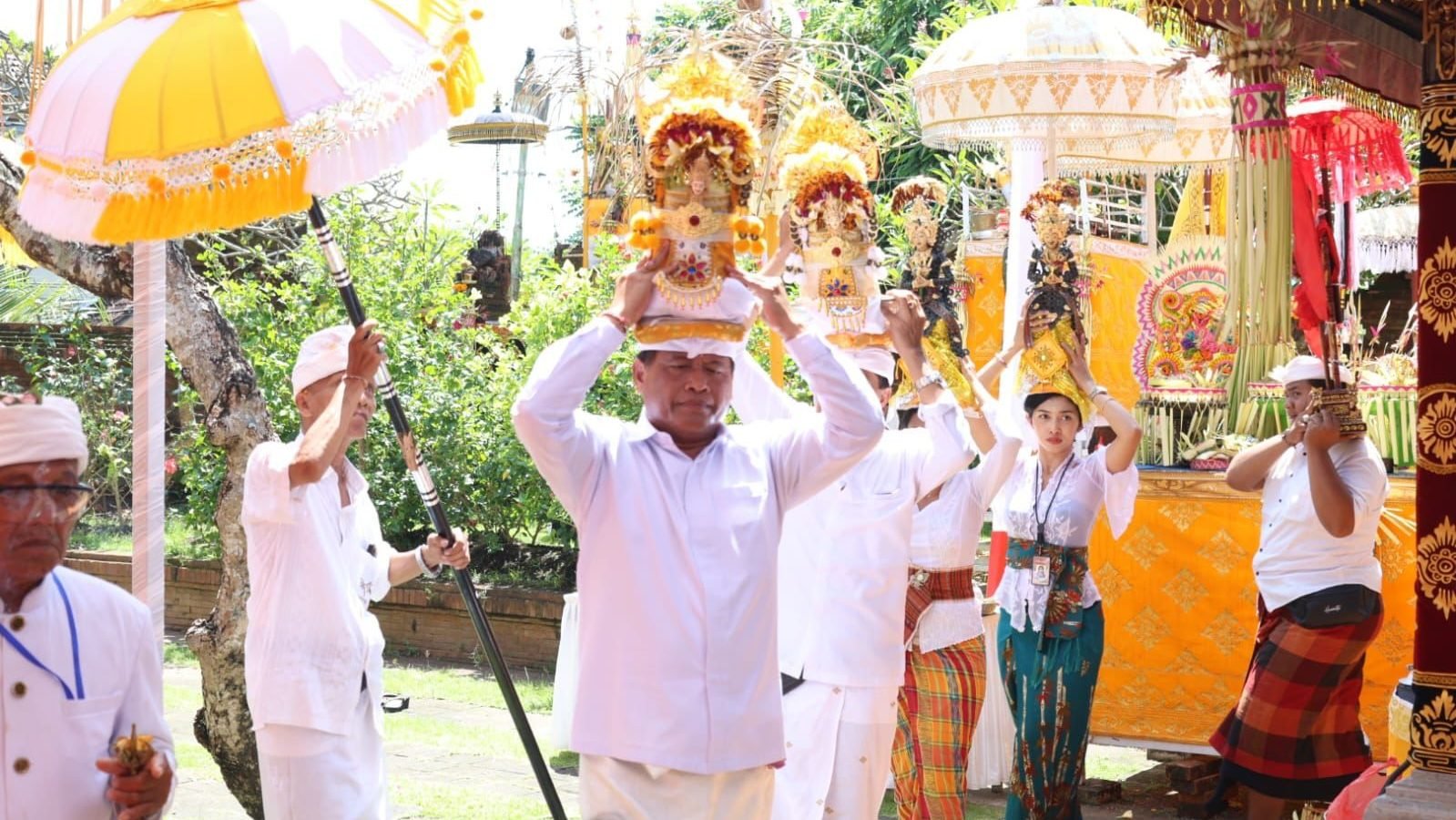 “Dengan pelaksanaan penyineban serangkaian Karya Melspas Caru Manca Rupa Lan Piodalan Mapedudusan Alit ini mari kita tingkatkan rasa sradha bhakti kita sebagai upaya menjaga keharmonisan antara parahyangan, pawongan, dan palemahan sebagai implementasi Tri Hita Karana,” ujar Alit Wiradana.