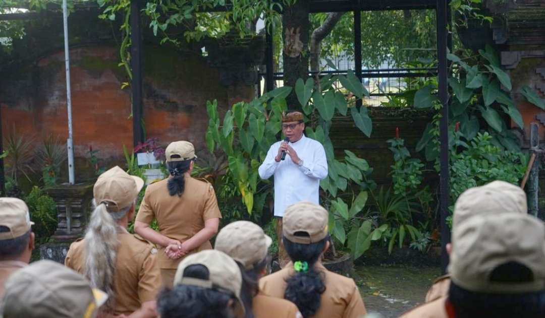 Foto: Sekda Alit Wiradana menyampaikan apresiasi atas kinerja TPID dalam pengendalian inflasi di Kota Denpasar saat apel disiplin di halaman kantor DPKP, Denpasar, Senin (24/7/2023). (BB/Hms Pemkot Dps)