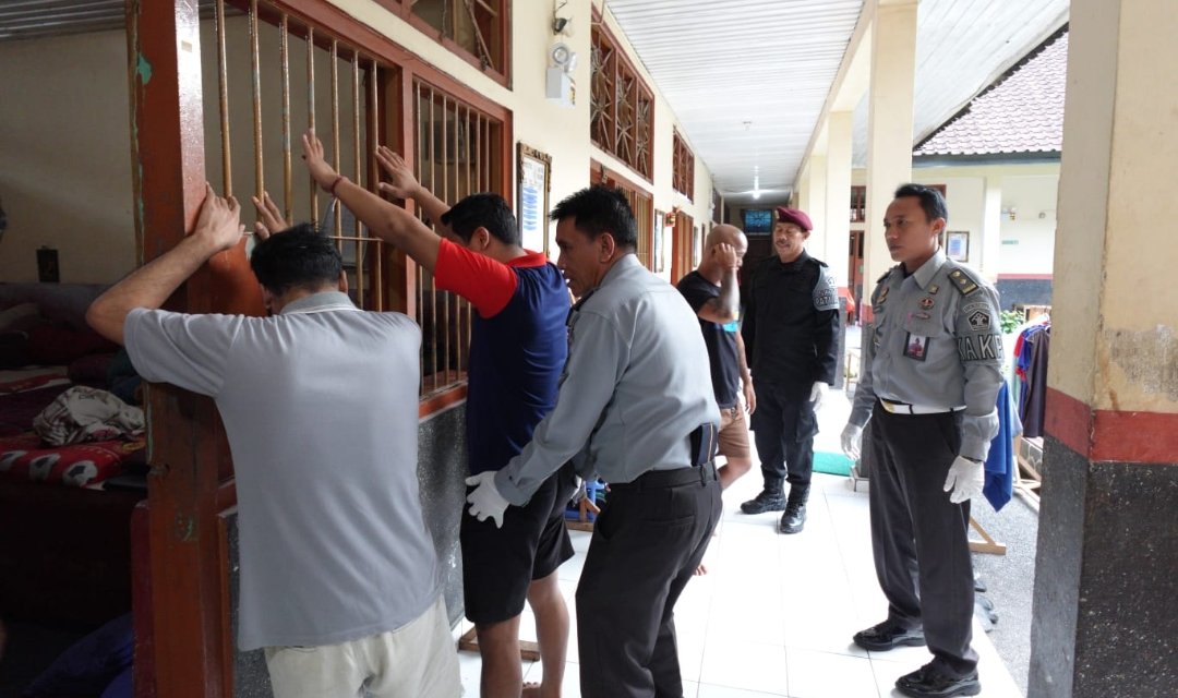 Foto: Petugas pengamanan rutan melakukan pemeriksaan warga binaan (BB/214).