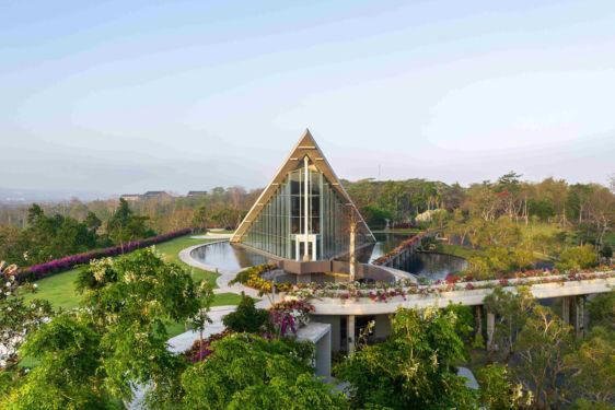 Dari luar saja, kamu akan terpikat oleh keanggunan bangunannya yang harmonis dengan alam Bali.