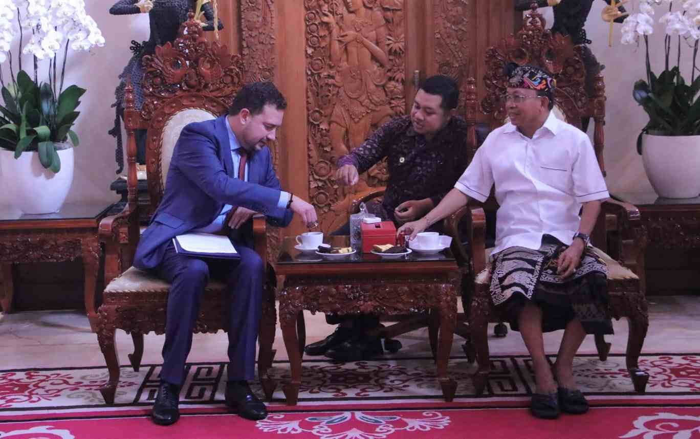 Foto: Gubernur Bali Wayan Koster menyambut tamu istimewa dari Eropa Timur — Wakil Menteri Luar Negeri Bulgaria, Nikolay Pavlov, yang datang bersama Duta Besar Bulgaria untuk Indonesia, Tanya Dimitrova. (Barometerbali/rah)