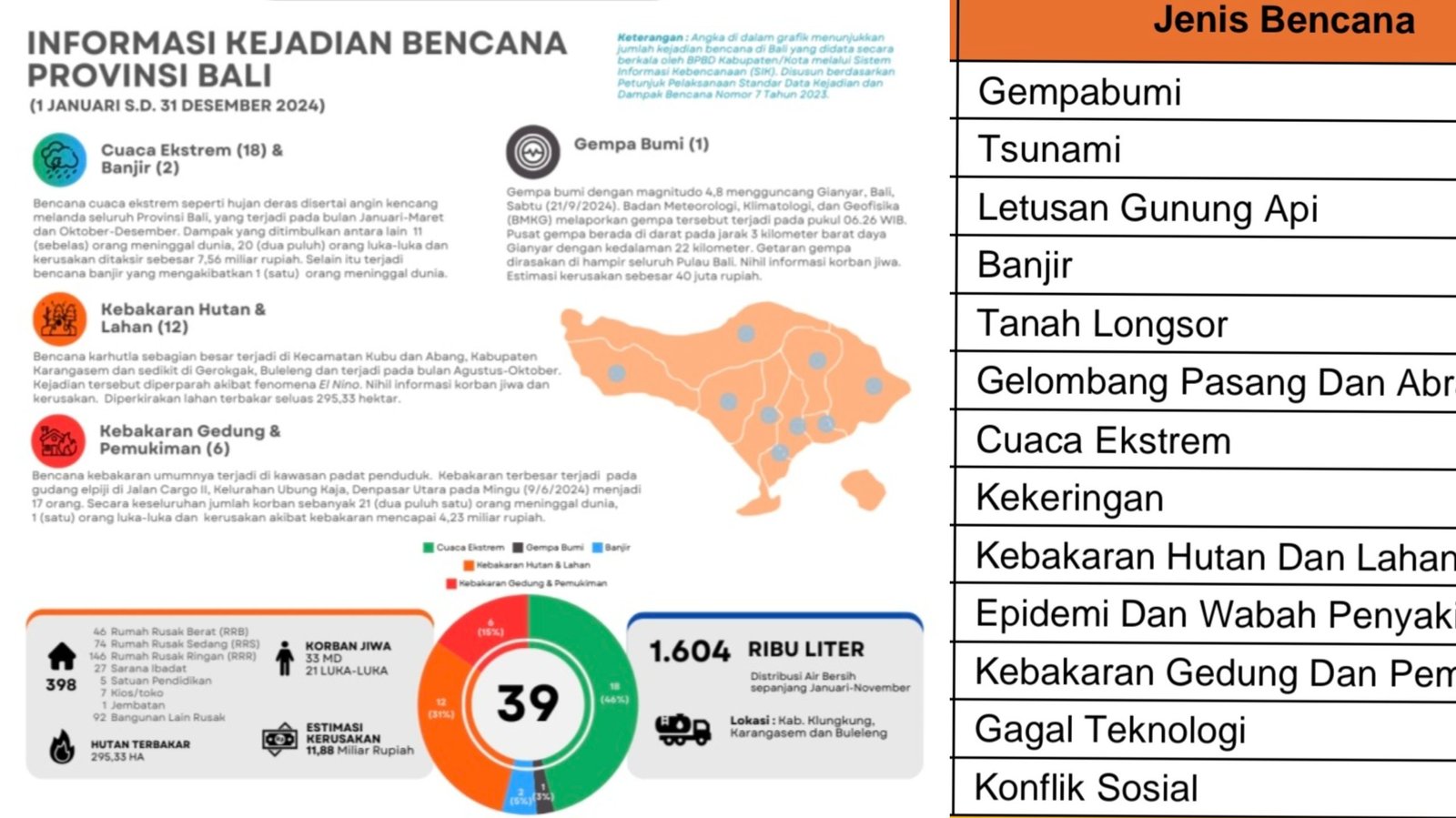 Infografis: Informasi kebencanaan dari BPBD Bali tahun 2024 di Provinsi Bali (barometerbali/bpbdbali)