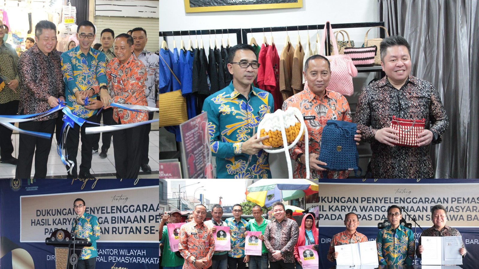 Kolase foto: Sesditjenpas Gun Gun Gunawan bersama Kakanwil Ditjenpas Jabar Kusnali meresmikan Toko Pojok Hasil Karya Warga Binaan di Pasar Baru Trade Center, Bandung, pada Jumat (14/02/2025). (barometerbali/pas/rah)
