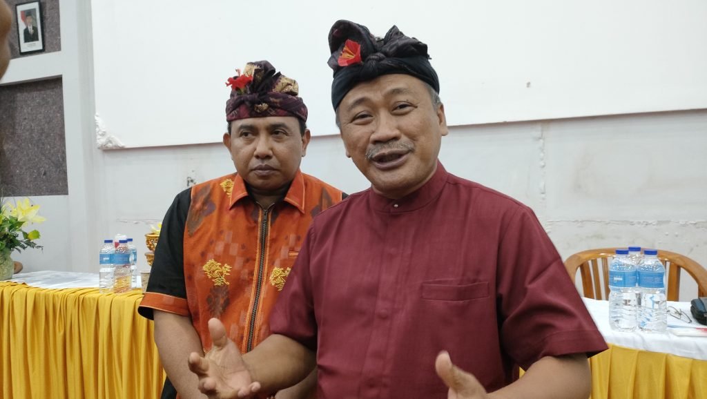 Patajuh Bandesa Agung Bidang Kelembagaan dan Sumber Daya Manusia Majelis Desa Adat (MDA) Provinsi Bali Dr Made Wena didampingi Penghulu Sabha Desa Adat Sukawati I Made Arya Amitaba, SE, MM (Foto: BB/Db)