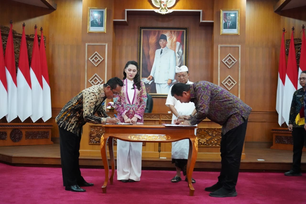 Foto: Bertempat di Jayasabha Denpasar, Senin (4/8/2025), ia menandatangani tiga perjanjian kerja sama lintas sektor bersama Gubernur Bali Wayan Koster. (barometerbali/rah)
