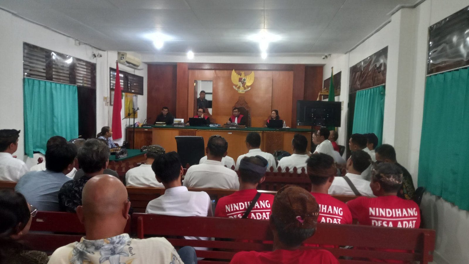 Foto: Sejumlah Masyarakat Adat Kelecung menyaksikan sidang di PN Tabanan, Kamis (23/11/23). (BB/212)