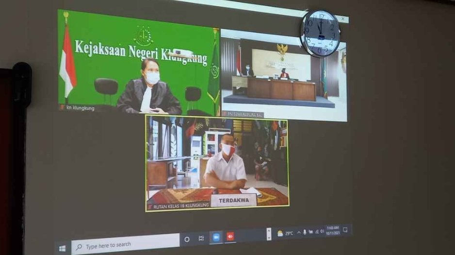 Terdakwa Ketut Tamtam hadir secara hybrid di PN Semarapura, Klungkung, Selasa (12/10/2021)
