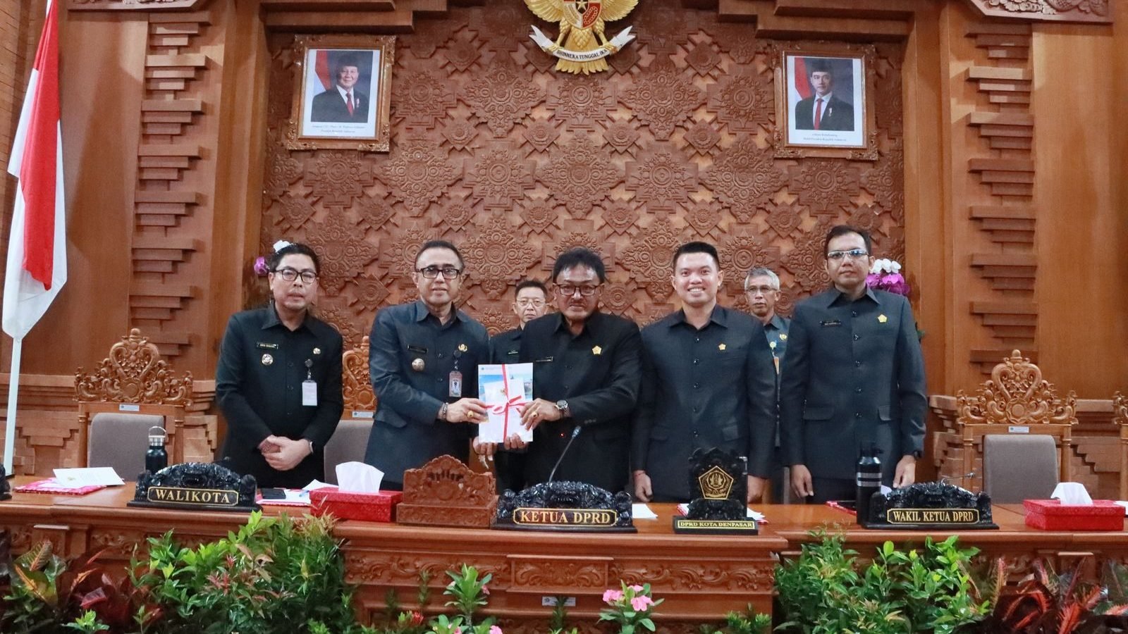 Sidang Paripurna dipimpin Ketua DPRD Denpasar, I Gusti Ngurah Gede didampingi Wakil Ketua DPRD Denpasar, Ida Bagus Yoga Adiputra, dan Dr. Made Oka Cahyadi Wiguna. Hadir dalam kesempatan tersebut Wakil Walikota Denpasar, I Kadek Agus Arya Wibawa, Forkopimda Kota Denpasar, Sekda Kota Denpasar, Ida Bagus Alit Wiradana, dan Pimpinan OPD Pemkot Denpasar.