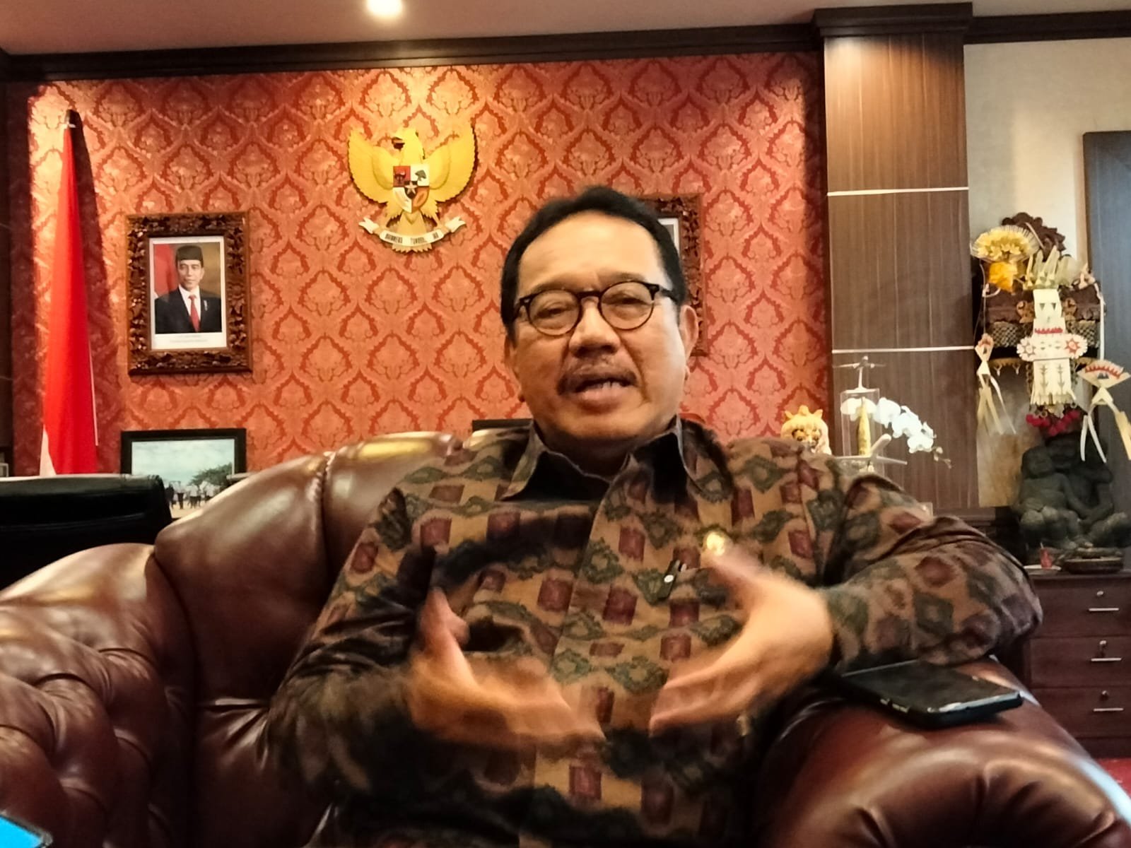 Wagub Bali Cok Ace yang juga selaku alumni Unud berharap asas praduga tidak bersalah dikedepankan dalam kasus dugaan korupsi dana Sumbangan Pengembangan Institusi (SPI) Unud saat ditemui awak media, kantor Wagub Bali, Denpasar, Senin (10/4/2023). (Foto: BB/DS)