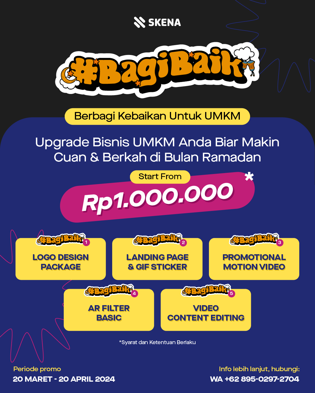 Untuk informasi lebih lanjut tentang program “BagiBaik: Berbagi Kebaikan untuk UMKM” serta layanan-layanan kreatif yang ditawarkan oleh SKENA, kunjungi situs web mereka atau hubungi  0811-4220-204.