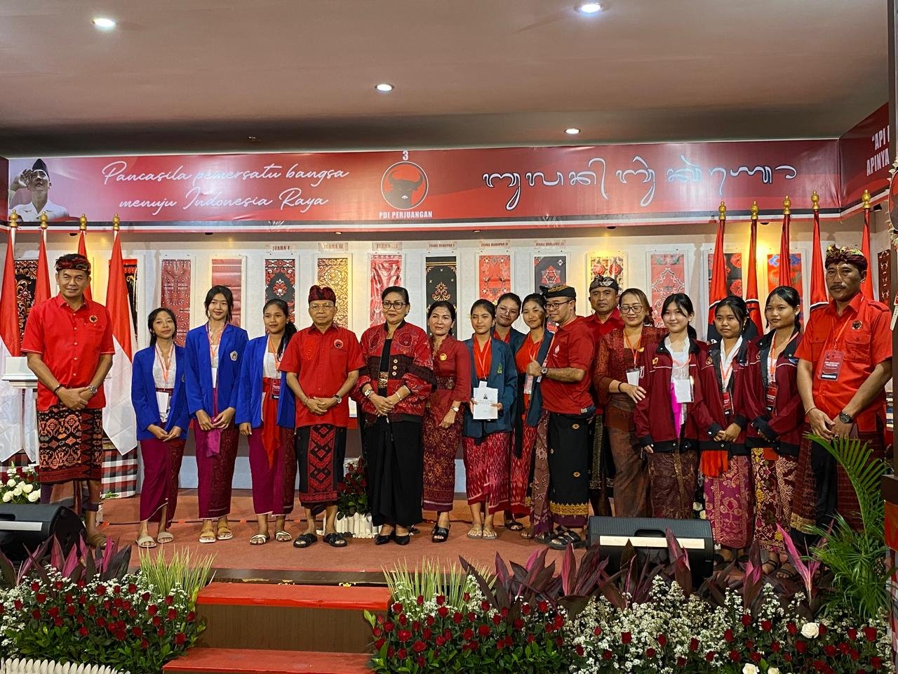 Ket foto: Foto bersama Wayan Koster didampingi Putri Suastini Koster dan jajaran pengurus DPD PDI Perjuangan Bali bersama perserta LCC Haluan Pembangunan Bali tingkat SMA/SMK usai babak final, di Kantor DPD PDI Perjuangan, Jumat (21/6/25). (Sumber: barometerbali/Rian)