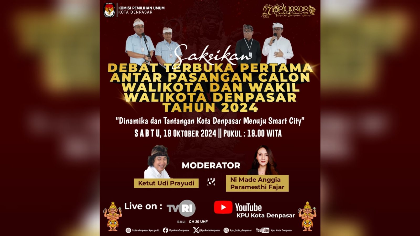 Link live streaming youtube Debat Pertama Pilawakot Denpasar 2024