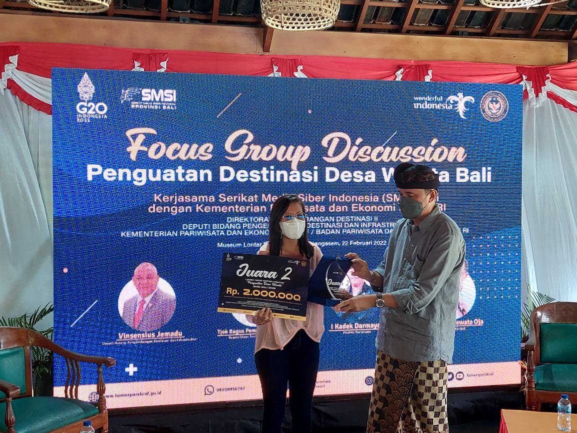 Terpilih sebagai juara pertama adalah Ni Kadek Novi Febriani dari media radarbali.id dengan judul berita “Pesona Desa Wisata Temukus yang Masih Terbungkus” dan berhak atas uang Rp3 juta.