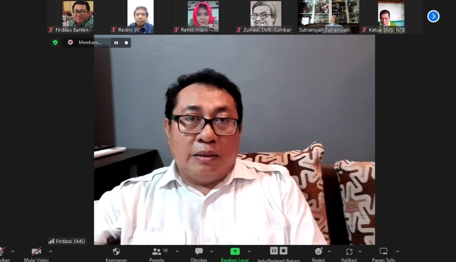 Foto: Ketua Umum Serikat Media Siber Indonesia (SMSI) Firdaus ketika memimpin rapat pleno SMSI melalui aplikasi Zoom, Jumat (28/7/2023). (BB/SMSI)