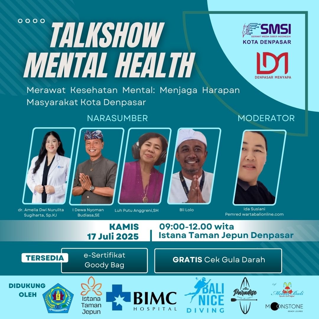 Ketua SMSI Kota Denpasar, Igo Kleden mengatakan, tema kesehatan mental sengaja diambil untuk talkshow yang bakal digelar di Taman Jepun Denpasar Kamis (17/7/2025) pukul 09.00-12.00 Wita ini dengan beberapa pertimbangan termasuk data kesehatan dalam beberapa tahun terakhir bahwa Bali mengalami peningkatan kasus bunuh diri yang cukup mengkhawatirkan.