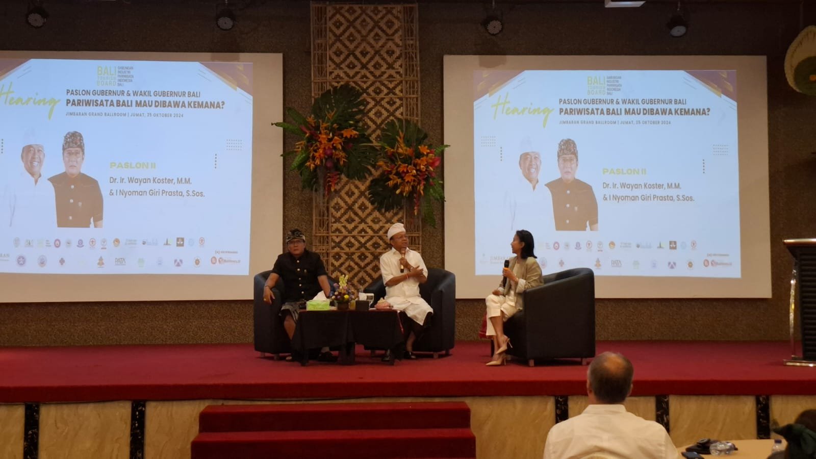 Ket foto: Hearing  Paslon Gubernur-Wakil Gubernur Bali bertajuk Pariwisata Bali Mau Dibawa Kemana?, yang digelar GIPI Bali di Jimbaran, Jumat (25/10/2024). (barometerbali/213)