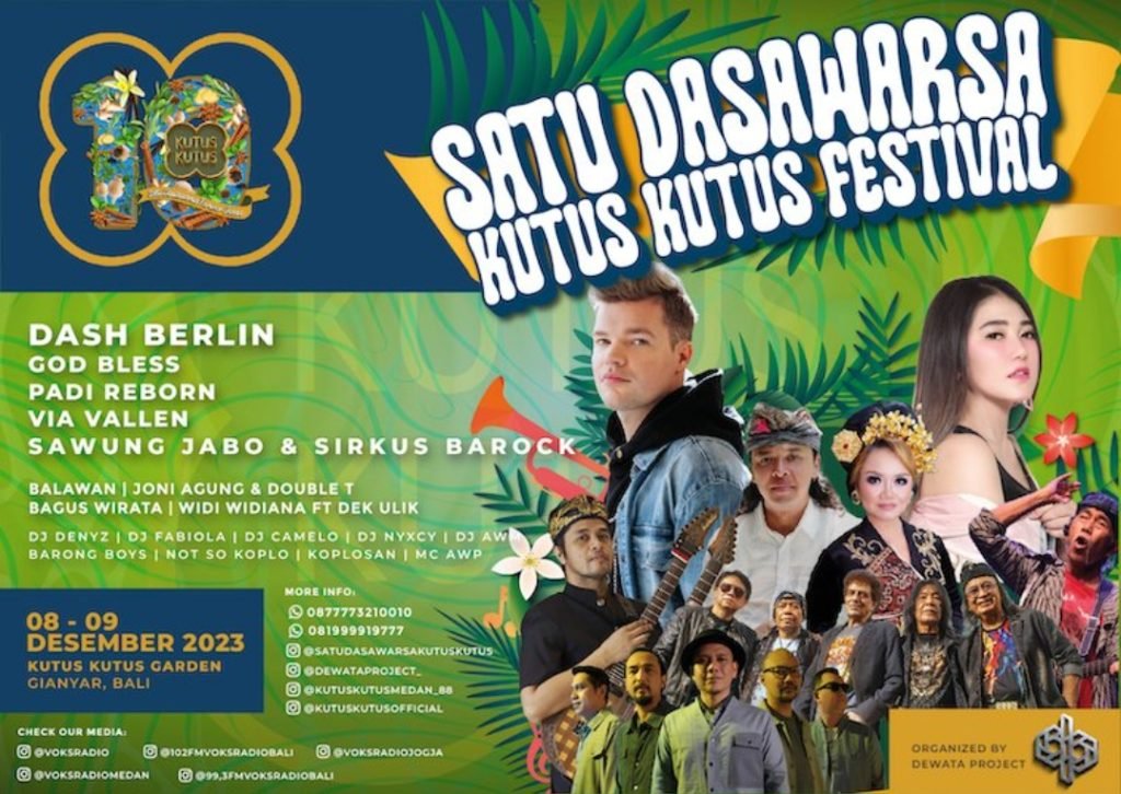 “Kami ingin menghadirkan suatu yang luar biasa Satu Dasa Warsa Kutus Kutus hadir di bumi pertiwi. Kita datangkan artis-artis besar ini melalui pertunjukan atau konser musik yang spektakuler dan unik seperti God Bless, Bagus Wirata, KPL Band, Joni Agung and Double T, Padi Reborn, Via Vallen, Sawung Jabo dan Sirkus Barock, dan ditutup dengan penampilan DJ Dash Berlin,” papar Bambang Pranoto didampingi juga putranya Ukhita Paligan saat konferensi pers di Hotel RV, Buruan, Gianyar, Sabtu (9/12/2023).