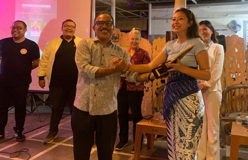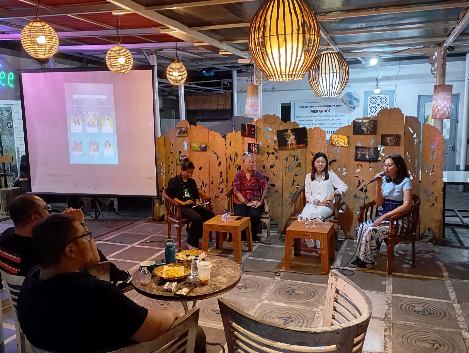 Foto: Ketua Dewan Pimpinan Wilayah (DPW) Bali Partai Amanat Nasional Sri Yogi Lestari (kanan) salah satu narasumber diskusi publik memperingati hari Kartini 21 April tahun 2024 bertajuk Perjuangan Perempuan dalam Dinamika Politik di Denpasar, Sabtu (20/4/2024) (Sumber: BB/216/Rian).