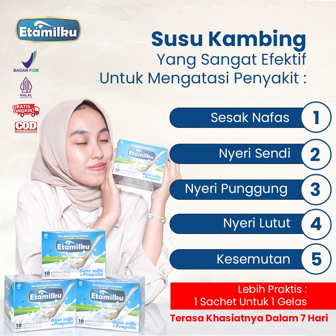 Selain manfaat utama bagi kesehatan pernafasan, Susu Kambing Etamilku juga menawarkan manfaat kesehatan secara keseluruhan. Kandungan kalsium dan fosfor dalam susu kambing membantu memperkuat tulang dan gigi, sementara asam lemak esensial mendukung kesehatan jantung. Ini menjadikan Susu Kambing Etamilku sebagai pilihan yang sempurna untuk menjaga keseimbangan kesehatan tubuh Anda.
