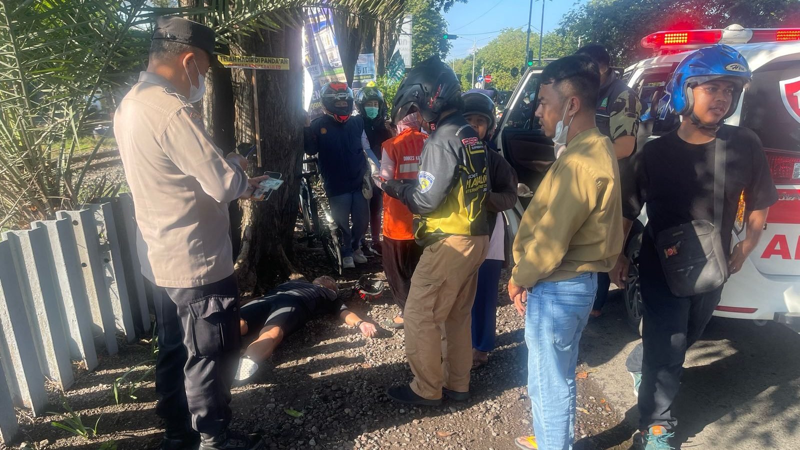 Barometerbali | Sidoarjo – Kecelakaan yang menimpa seorang pengendara sepeda angin terjadi di Jalan Raden Mohammad Mangkudiprojo sebelah Utara lampu merah Avian Banjarkemantren Buduran, Minggu (04/05/25) jam 07.15.
