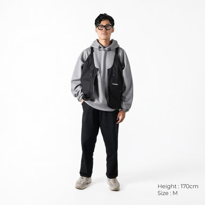 Vest multifungsi yang dapat diubah menjadi tote bag hanya dengan satu ritsleting. Dilengkapi dengan banyak kantong dan tali bahu yang dapat disesuaikan.