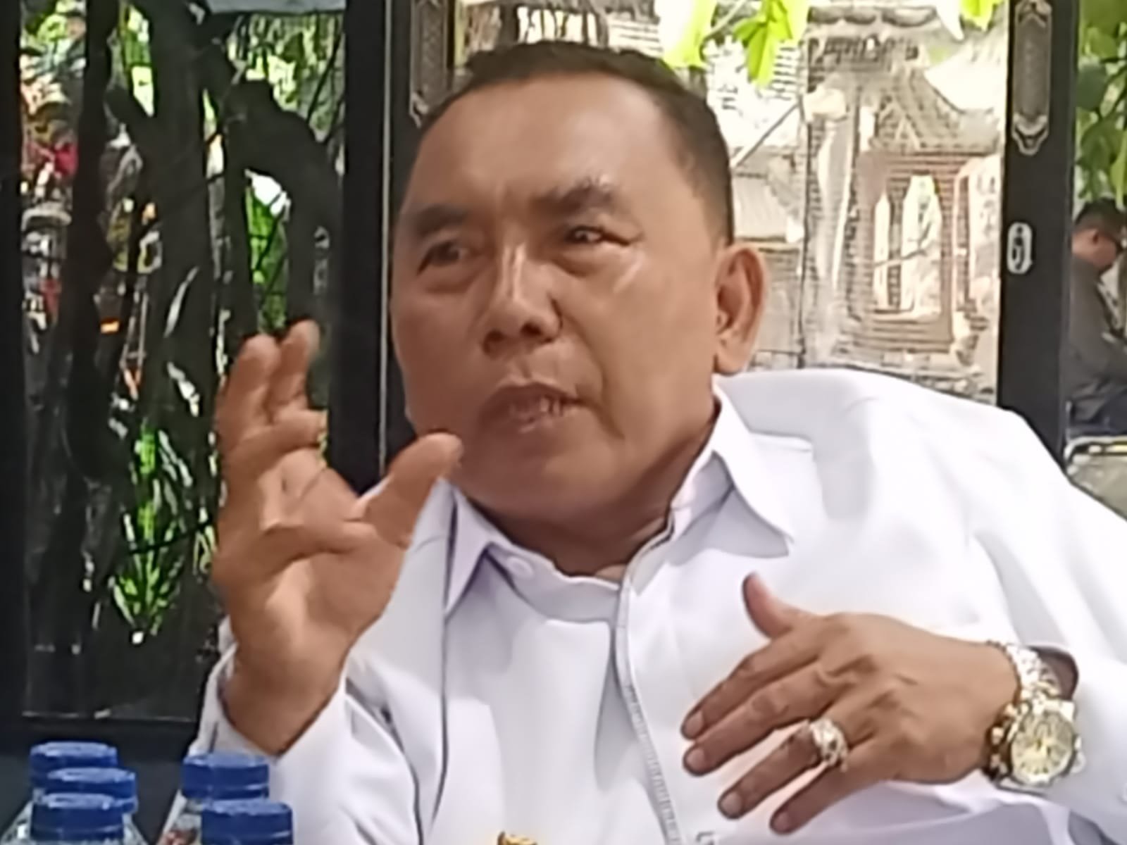 Ket foto: Bupati Jembrana, I Nengah Tamba sampaikan tanggapan terkait video Ipat berpasangan dengan Kembang Hartawan saat bertemu dengan awak media di kediamannya, Desa Kaliakah, Rabu (10/7/2024). . (Sumber: barometerbali.com/217)