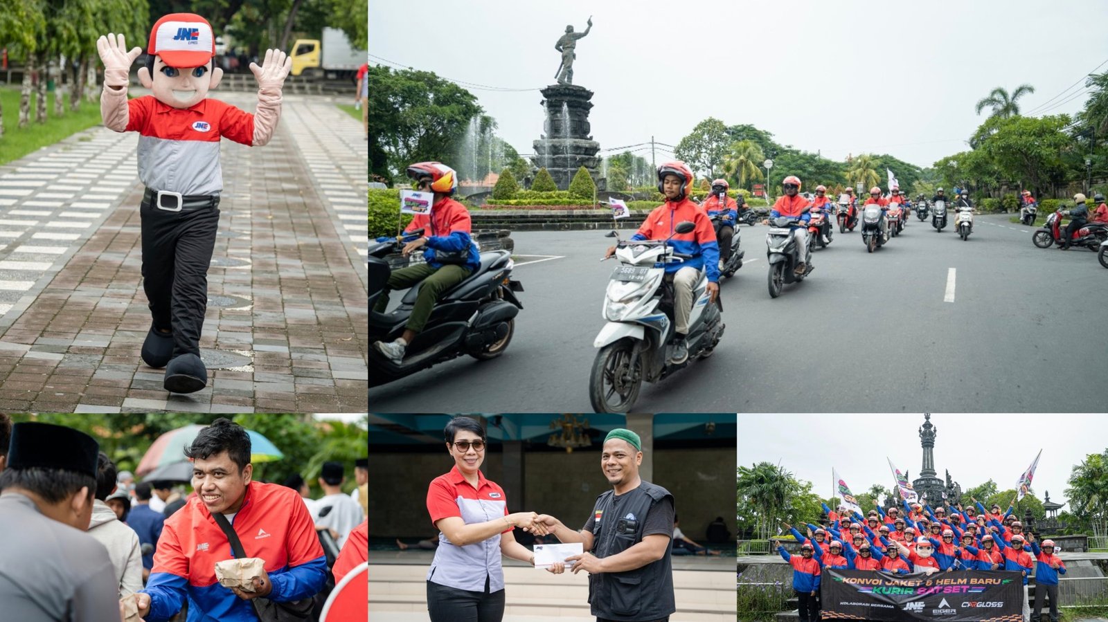 Eri Palgunadi selaku SVP – Marketing Group Head JNE menyampaikan, “Konvoi ini merupakan bentuk apresiasi kami atas dedikasi para #KurirSATSETJNE yang setiap hari menghubungkan kebahagiaan kepada masyarakat sesuai dengan tagline kami “Connecting Happiness”. Kolaborasi perlengkapan jaket dan helm ini menyatukan tiga merek lokal kebanggaan Indonesia, yaitu JNE di bidang logistik, EIGER Tropical Adventure sebagai penyedia perlengkapan kegiatan luar ruang, dan Cargloss Helmets yang dikenal sebagai produsen perlengkapan keselamatan pengendara bermotor. Perlengkapan ini tidak hanya memberikan kenyamanan yang optimal, tetapi juga meningkatkan visibilitas dan perlindungan bagi para kurir saat bekerja di lapangan.”