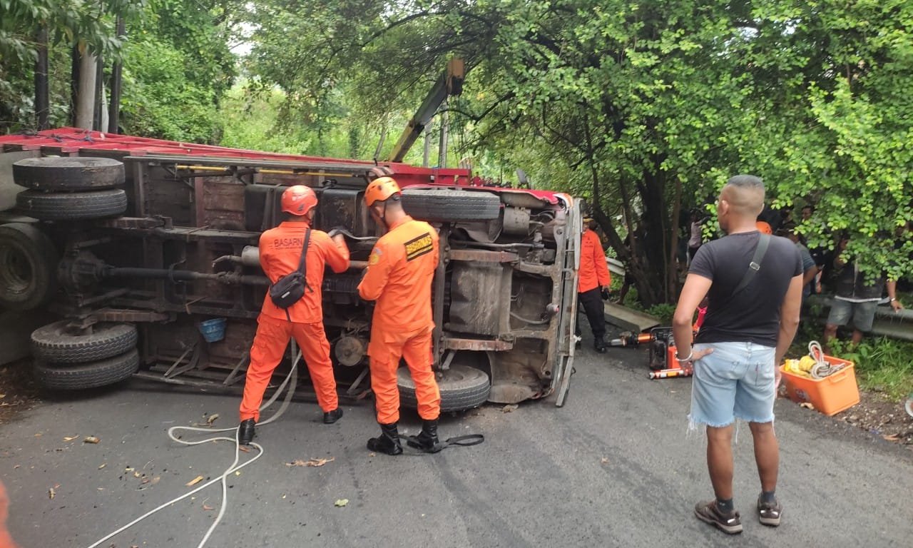 Jimbaran | barometerbali – Sebuah truk terguling di tanjakan Jalan Pura Goa Gong, Jimbaran, Jumat (16/12/2022) sore, sekitar pukul 16.30 Wita. Kecelakaan itu mengakibatkan 1 orang meninggal di tempat akibat terjepit di bagian kabin truk.